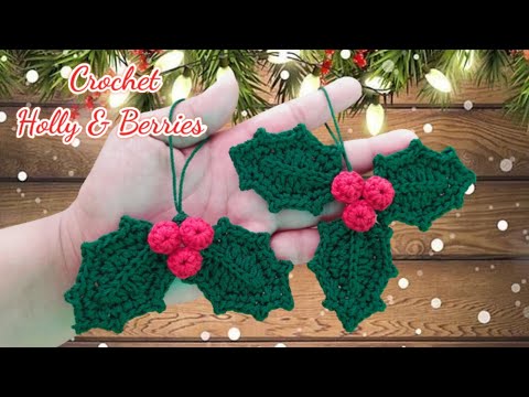 Still about Christmas ornaments or decorations for Christmas. This time I will share again a tutorial on how to crochet holly and berries, how to make it is very easy and the results are very beautiful, suitable for decorating your Christmas tree or wreath. You can use any type of thread, if the thread is small you can layer two. #crochet #christmasornaments #hollyberries